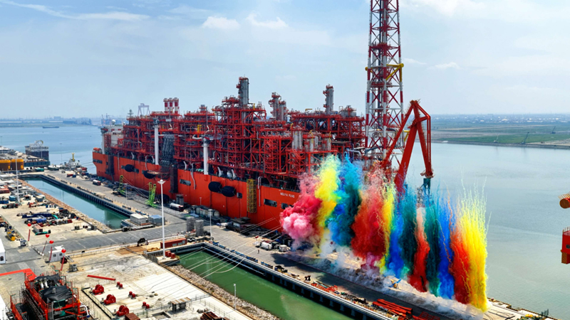 我國自主建造的最大噸位、最大儲氣量的新型海上浮式液化天然氣生產(chǎn)裝置NGUYA FLNG(恩古雅海上浮式液化天然氣裝置)在江蘇南通(啟東)呂四港啟航,巨力索具5000T吊梁大展風采。