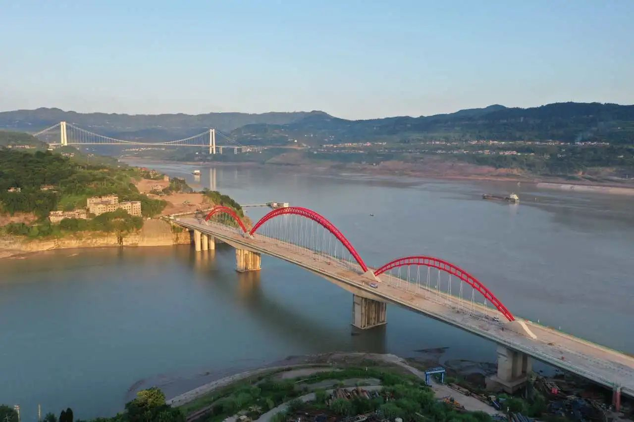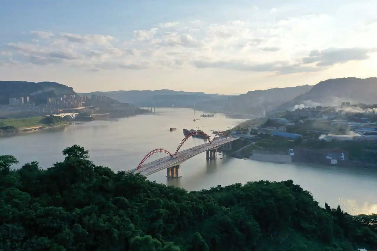 青山綠水之間,一座大橋騰空而起,不僅方便了當(dāng)?shù)厝嗣窠煌ǔ鲂?,促進(jìn)經(jīng)濟(jì)發(fā)展,而且在川渝大地,長(zhǎng)江之側(cè)形成了一道亮麗的風(fēng)景線,兼具美學(xué)和實(shí)用價(jià)值。