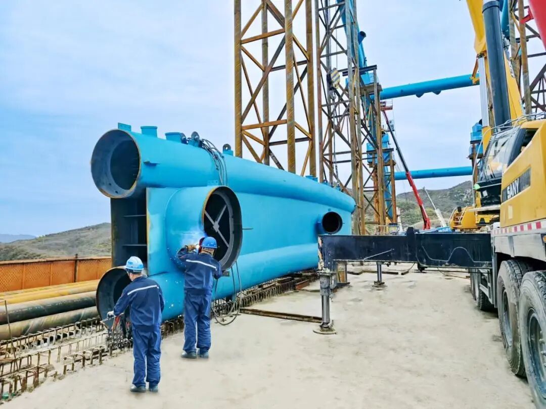 巨力索具針對(duì)跨度大、工期緊等特點(diǎn),提供了支撐力強(qiáng)、穩(wěn)定性好、結(jié)構(gòu)輕盈的鋼管拱,增強(qiáng)橋梁整體穩(wěn)定性的橫撐,承受拉力、控制變形的吊桿等核心部件。在施工過程中采用臨時(shí)支架原位拼裝法,并全程參與吊裝,確保項(xiàng)目在復(fù)雜的條件下順利推進(jìn)。
