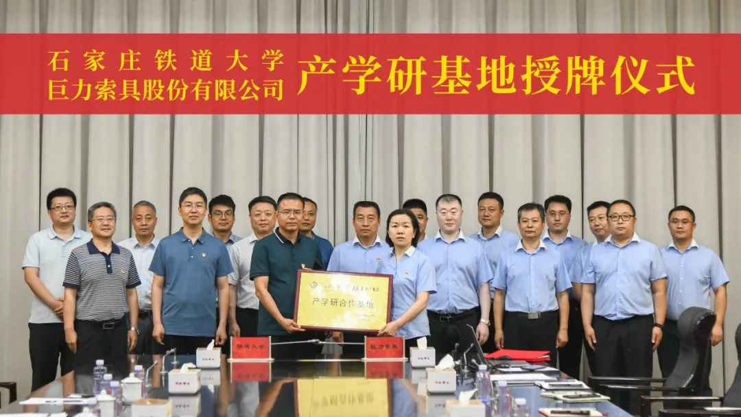 2023年7月4日,石家莊鐵道大學(xué)土木工程學(xué)院韓東海書(shū)記一行10人到訪巨力索具,雙方就產(chǎn)學(xué)研合作和黨建工作進(jìn)行交流座談,舉行了戰(zhàn)略框架協(xié)議簽字儀式暨石家莊鐵道大學(xué)產(chǎn)學(xué)研基地授牌儀式。巨力索具常務(wù)副總裁李彥英、集團(tuán)黨委副書(shū)記李天明、副總裁亢永剛接待并出席儀式。